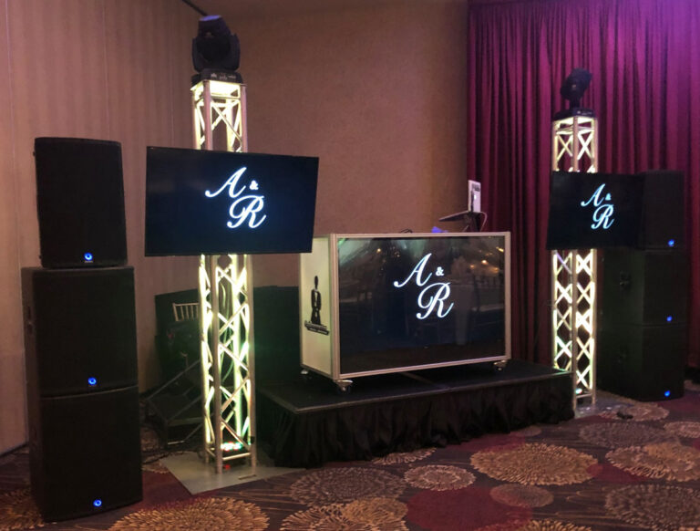 Recommended for over 160 guests. Includes everything mentioned above along with upgraded sound and lighting. This package allows for better sound quality. We also illuminate your dance floor with two truss totems for an enhanced party feel.